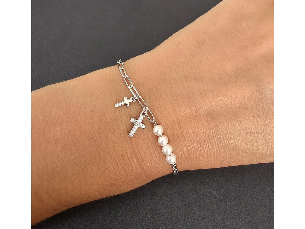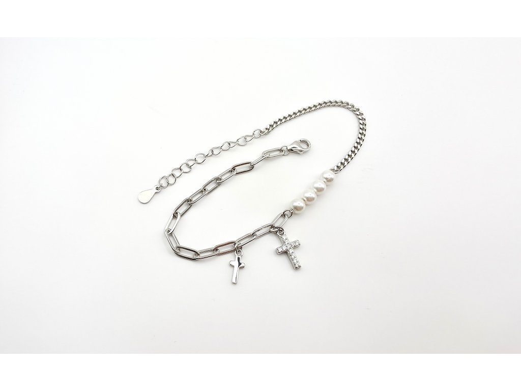 B00002M - Stříbrný náramek - křížek a perla