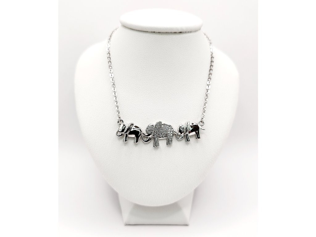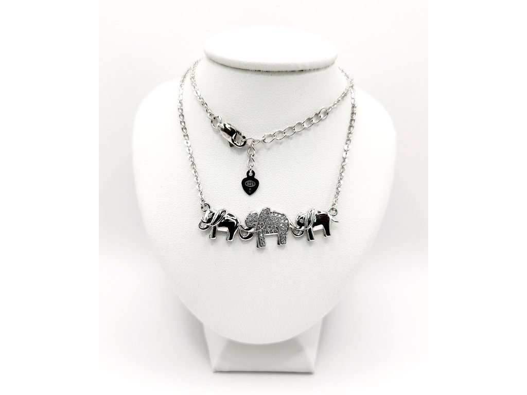 Dodejte svému stylu jedinečný význam s tímto stříbrným náhrdelníkem se slony , který je symbolem síly, moudrosti a štěstí. Precizně propracovaný motiv slonů je ozdoben třpytivými zirkony, které dodávají šperku luxusní lesk. Díky svému elegantnímu designu a kvalitnímu zpracování je tento náhrdelník ideální pro každodenní nošení i speciální příležitosti.