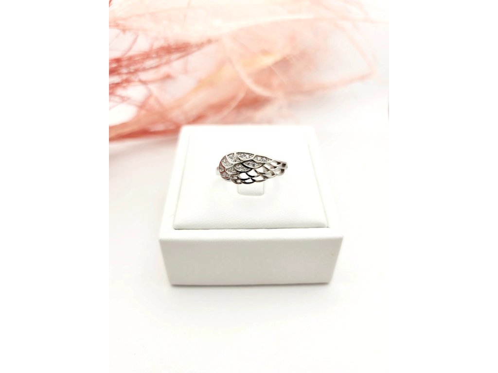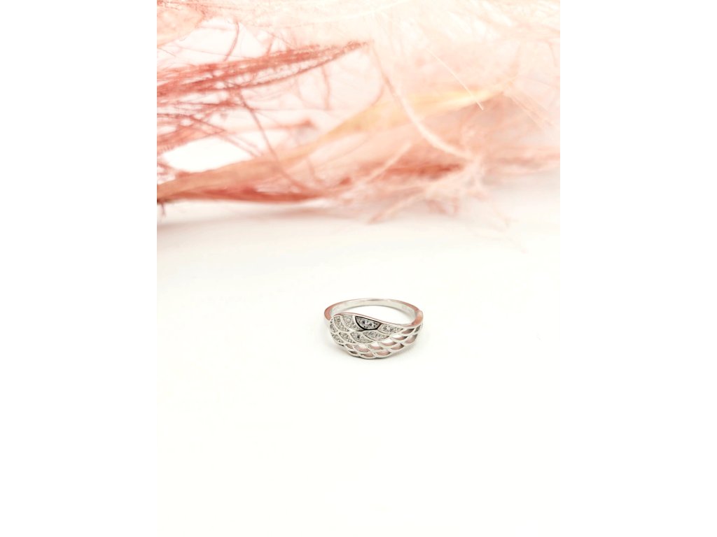 Elegantní a jemný design: Křídlo je detailně zpracováno a zirkony dodávají prstenu nadčasový a sofistikovaný vzhled.