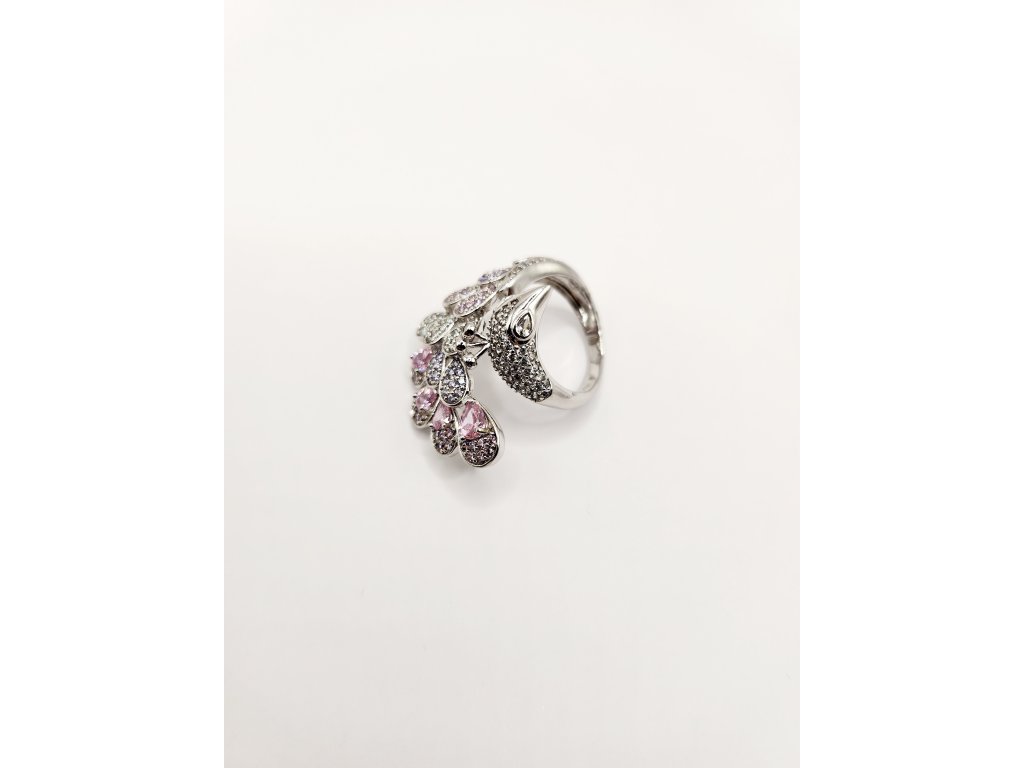 Stříbrný prsten s motivem páva a zirkony