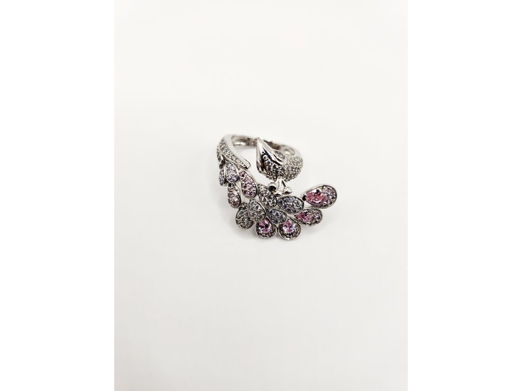Přineste do svého života nádech elegance a krásy s tímto okouzlujícím stříbrným prstenem. Jeho design zobrazuje nádherný páv, symbol krásy a moudrosti, který je ozdoben čirými a růžovými zirkony. Tento prsten je ideálním kouskem pro každou ženu, která chce vyjádřit svou osobnost a vkus.